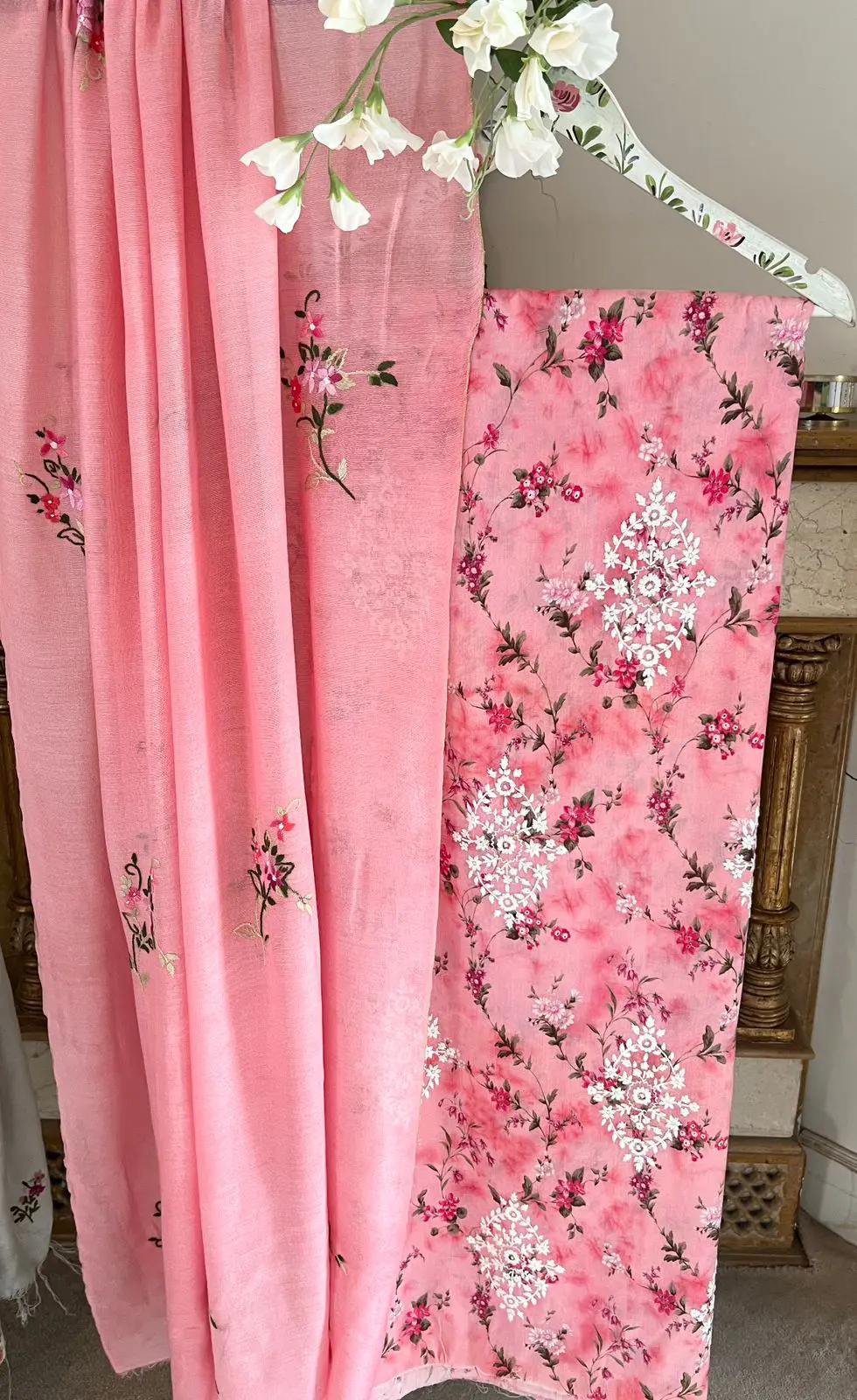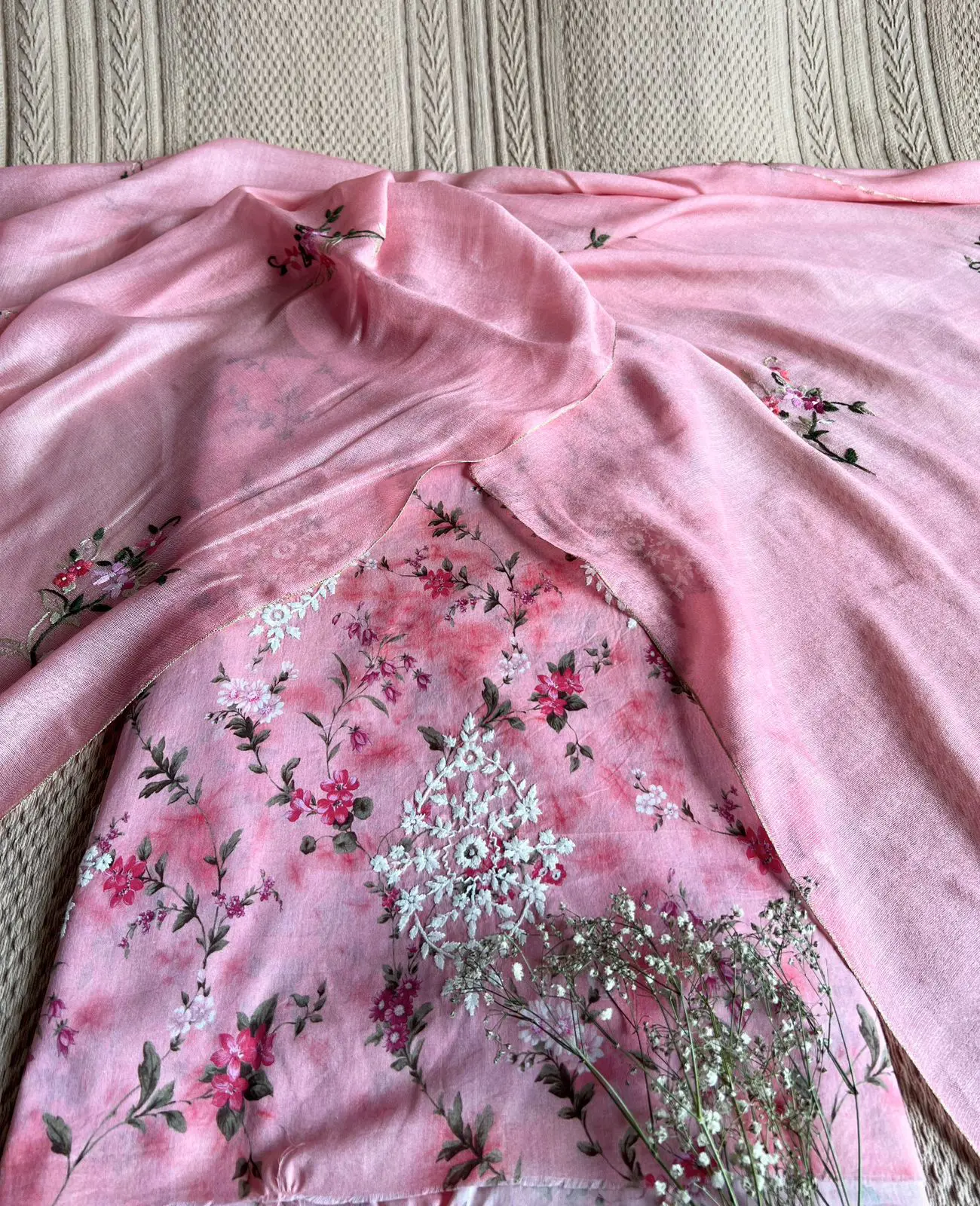 Each piece is hand-matched, embroidered, and passed from artisan to artisan, bringing to life a tale of timeless floral grace.